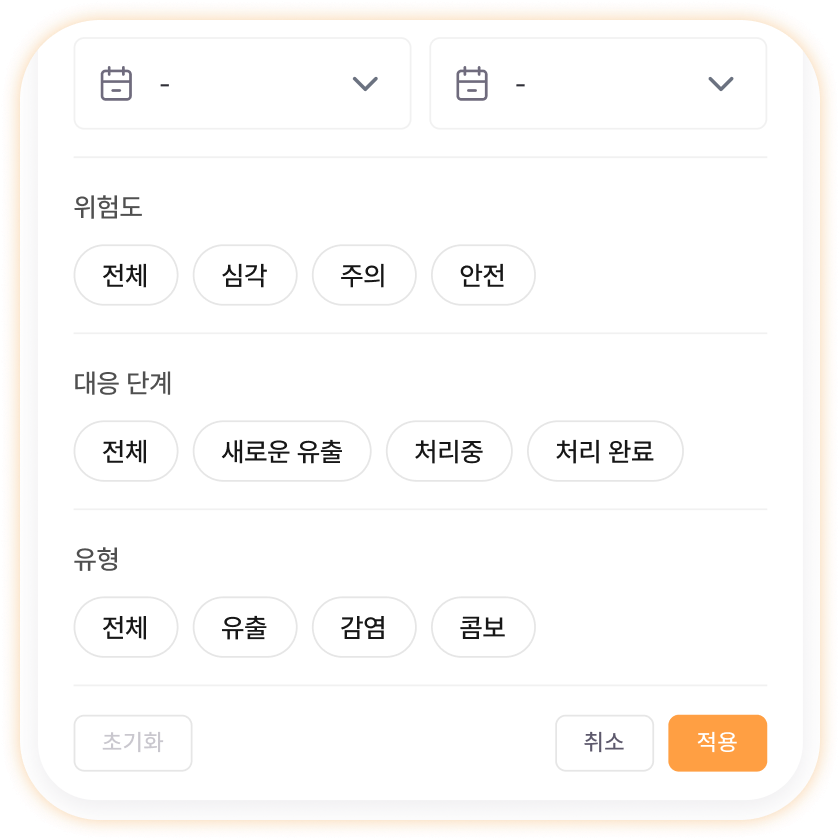 예를 들어 ‘이번 주 심각 등급 미처리 건’만 필터링하면 오늘 해야 할 일만 명확하게 보이고, 필터 상태가 화면에 표시되어 현재 어떤 조건으로 보고 있는지 헷갈리지 않아 실수를 줄일 수 있습니다.