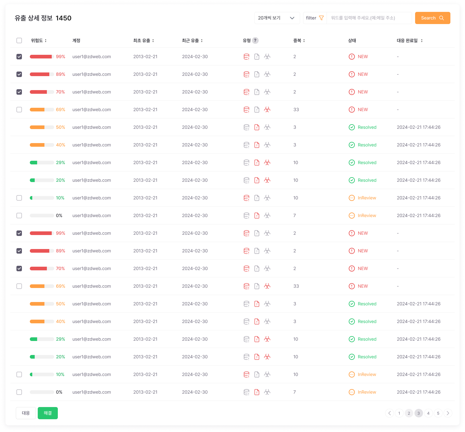 각 유출 사고를 한 페이지에서 세부적으로 파악할 수 있어 사건 전체를 체계적으로 이해하고 대응할 수 있습니다.