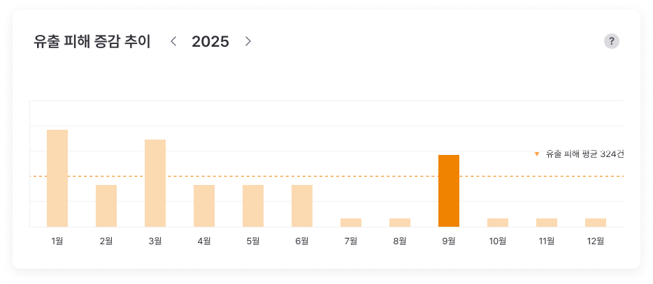 유출 정보의 심각도와 위험 점수를 제공하고, 대응 추이와 피해 증감을 시각화합니다.